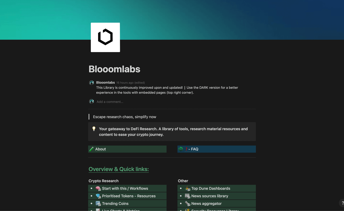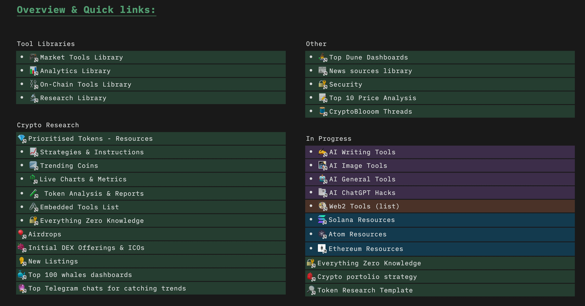 π§ͺ Each of these sections and pages have a comprehensive overview of tips, tricks, tools and embedded links, giving all the alpha straight to you.