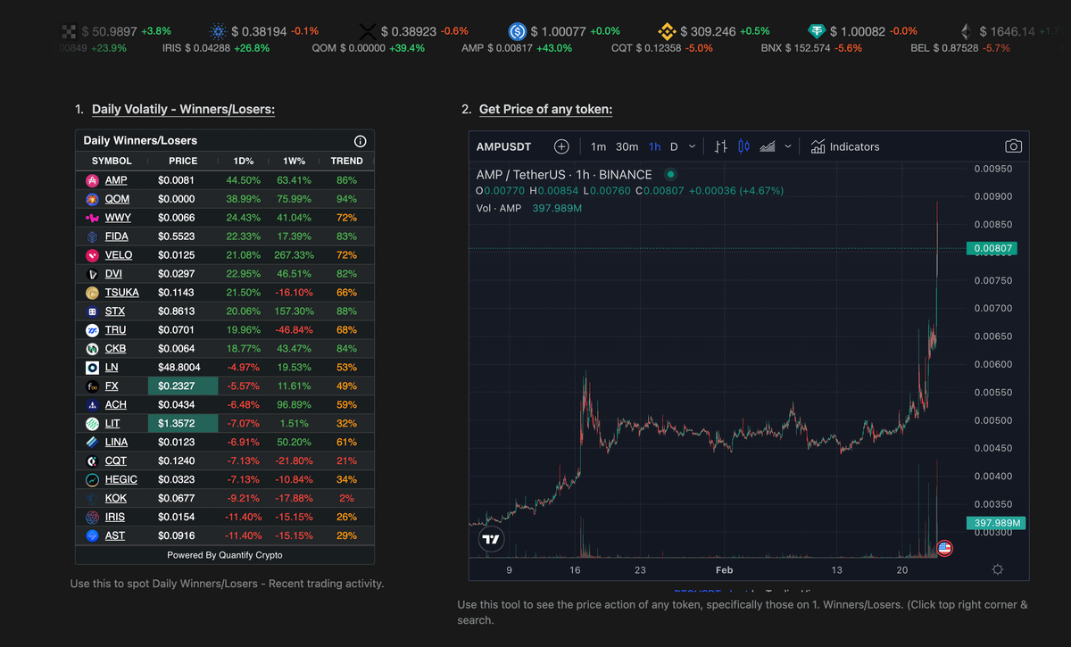 You can get an overview over trending tokens and get their price actions straight away.