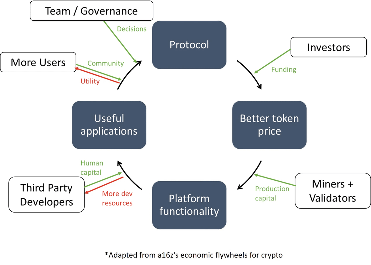 To keep things consistent I always use the following framework adapted from @a16z's economic flywheels for crypto