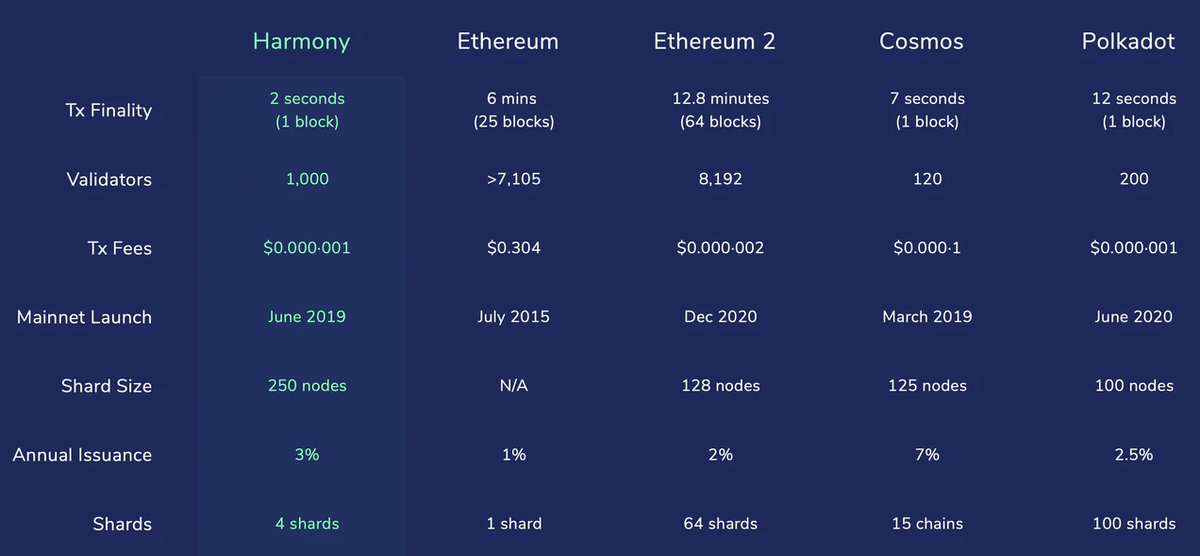 04/45 Protocol: Harmony runs a Practical Byzantine Fault Tolerance (PBFT) and combines this with a novel Effective Proof-of-Stake (EPoS) mechanism to provide fast time to finality (<2s), low costs and scalability.