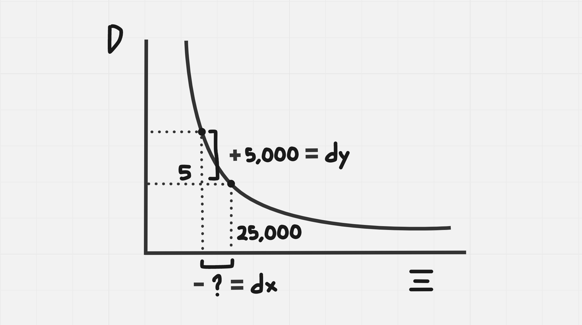 Now we can compute the amount I will get out of the swap by applying dy to our X * Y = K formula.