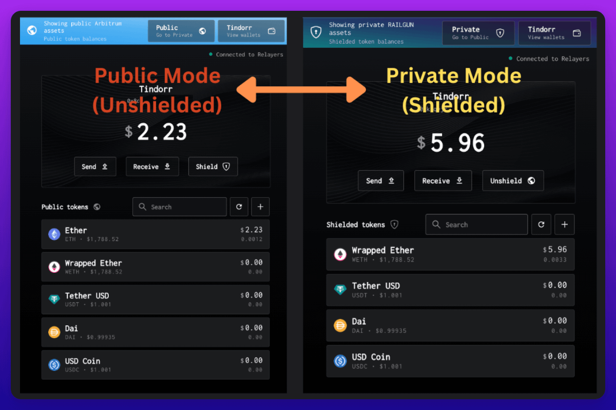 RAILGUN allows users and protocols to make transactions "shielded" (anonymous), which means: