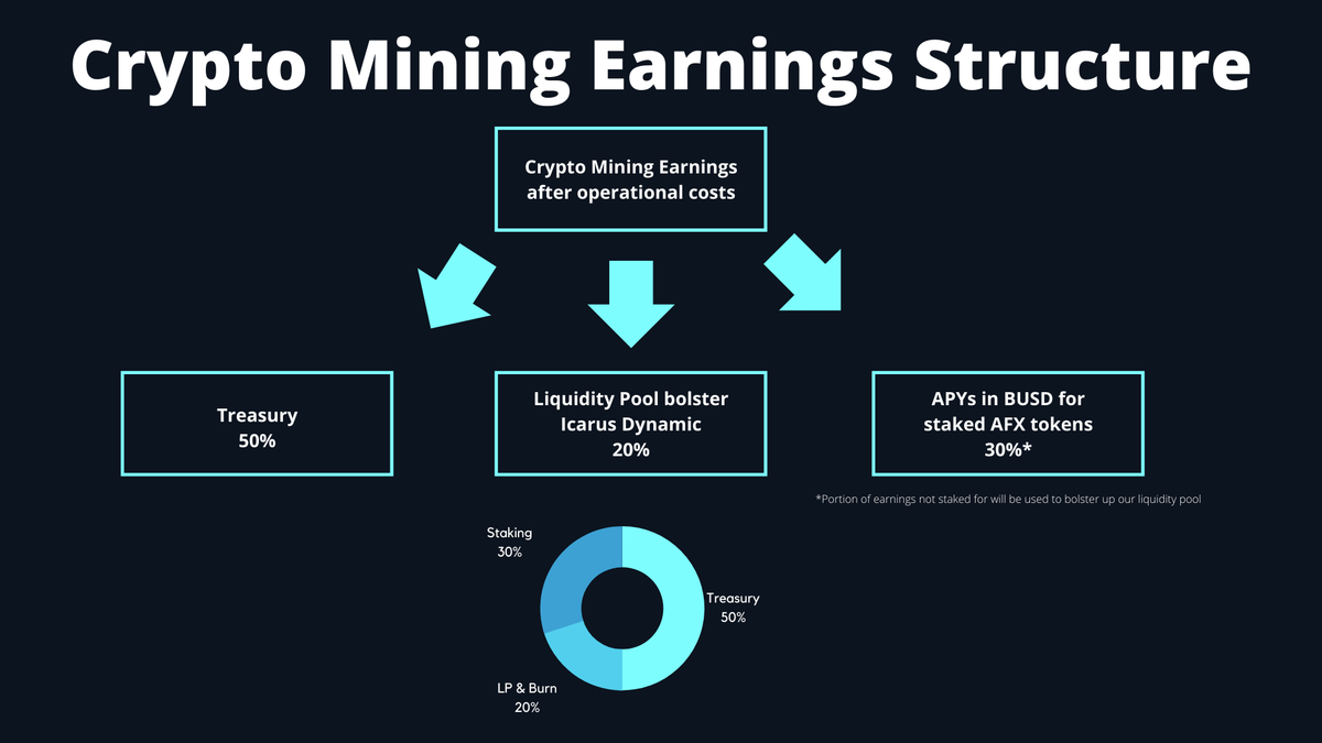 Crypto Mining - Profits from mining will be converted into $USDC and used to bolster up LP and/or fund to buy back and burns.