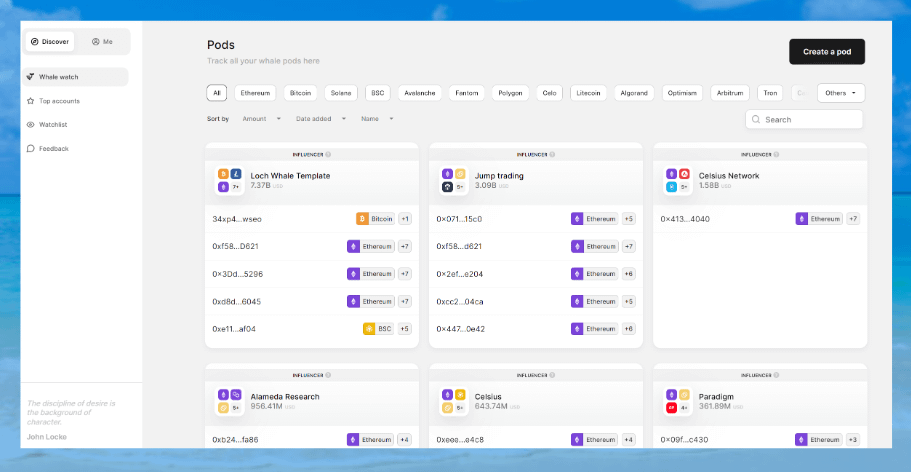 It allows you to create "Pods" or groups of multiple wallets for easy whale watching, which imo is super clean.