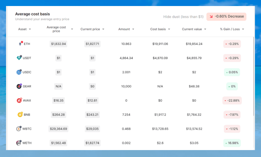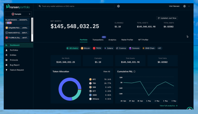 • You can track an aggregated portfolio across multiple wallets.