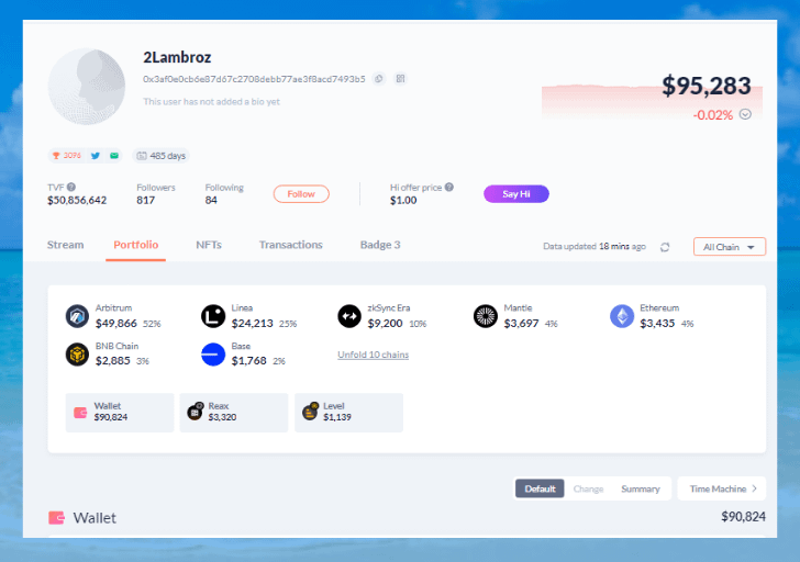 DeBank is undoubtedly the go-to favorite portfolio tracker for many reasons: multiple supported chains, a wide range of supported assets, spying on people, and more.