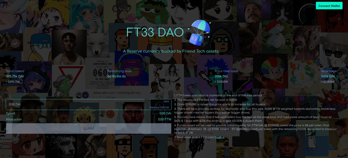 @friendtech33 is a DAO launching a reserve currency $FTW which is backed by their Treasury.