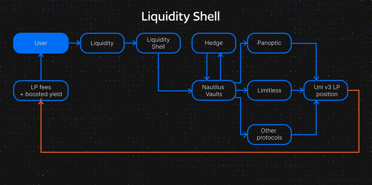 Here's how Logarithm's Liquidity Shell aggregator might route LPs through LPD protocols like Limitless, Panoptic or Infinity
