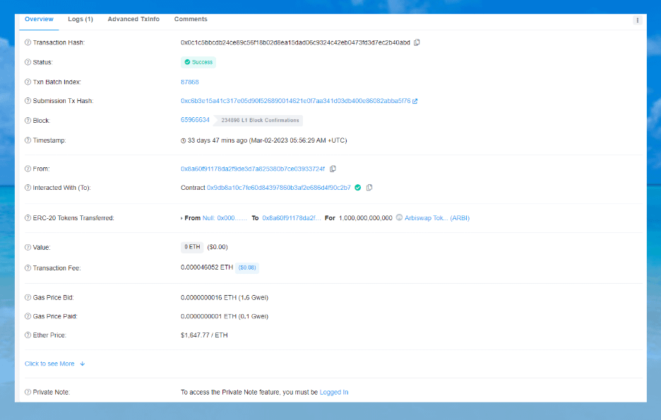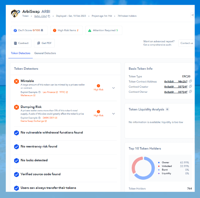ArbiSwap has deleted their website, but their token address is still accessible on Arbiscan -