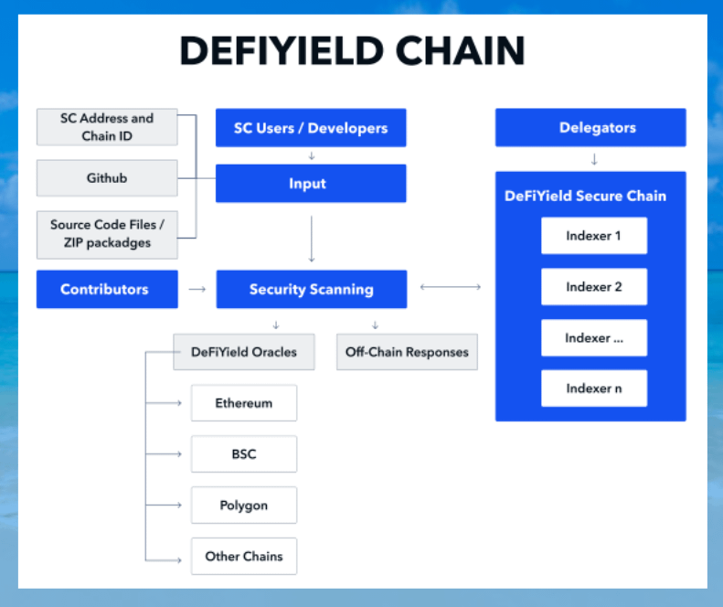 DeFiChain, their native delegated PoS blockchain enabling decentralized verification and validation of smart contract security.