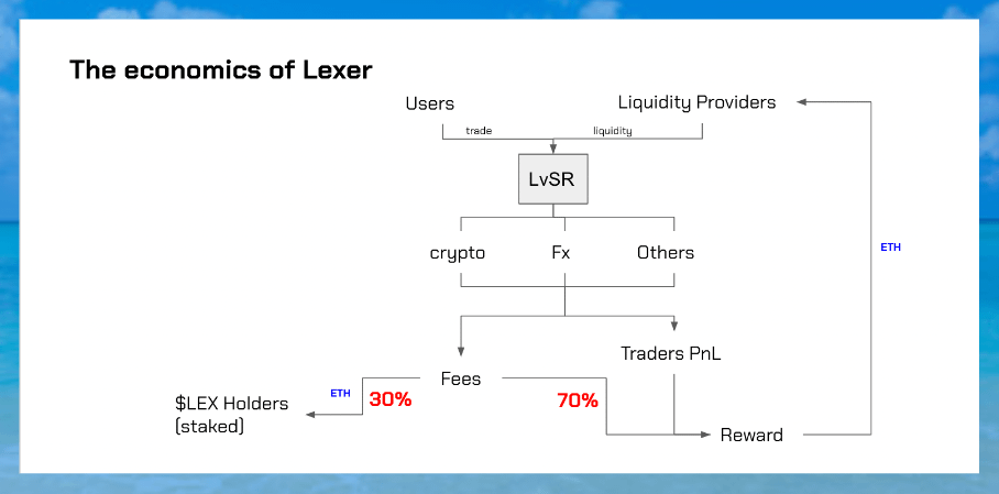 30% of fees go to $LEX holders and 70% + Trader PnL go towards LPs.