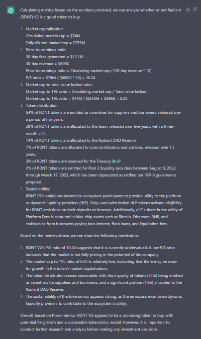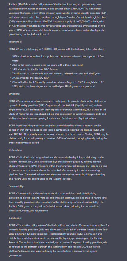 Similar to Step 2, paste the Tokenomics docs into Chat GPT. In this case, I'll use $RDNT.