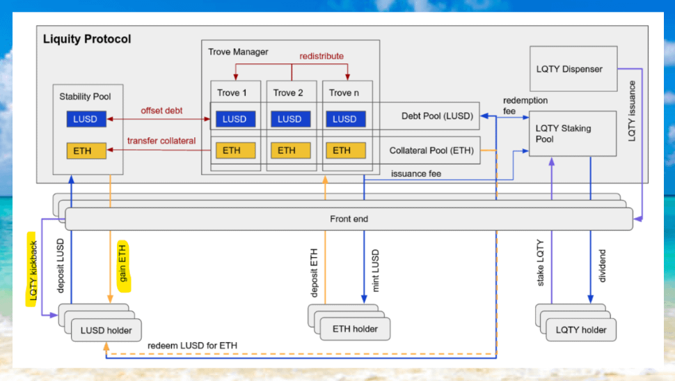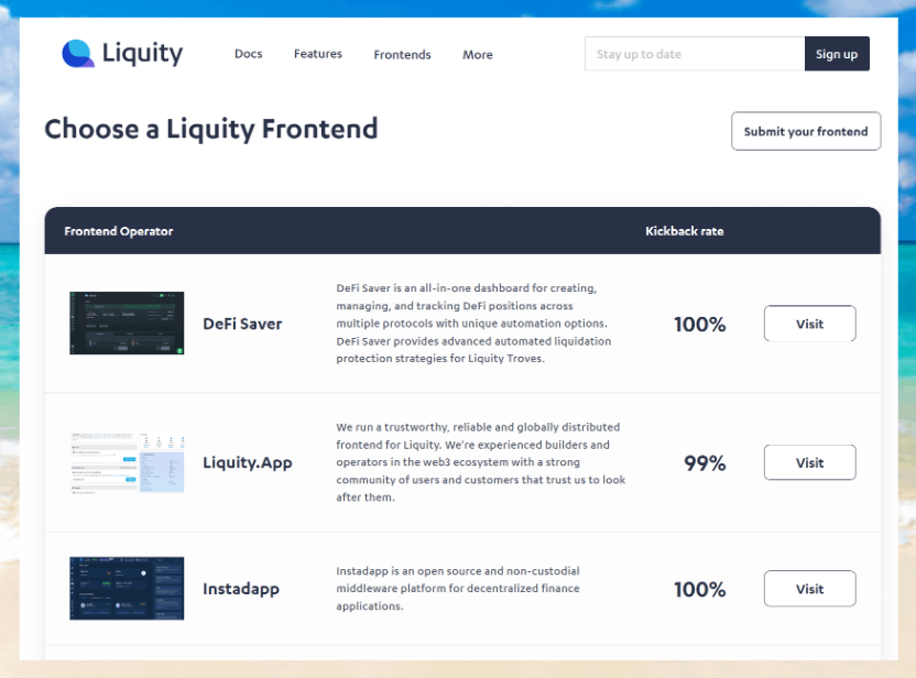 Liquity's front-end is entirely decentralized by pretty much "outsourcing" it to third parties and creating a fully distributed ecosystem.