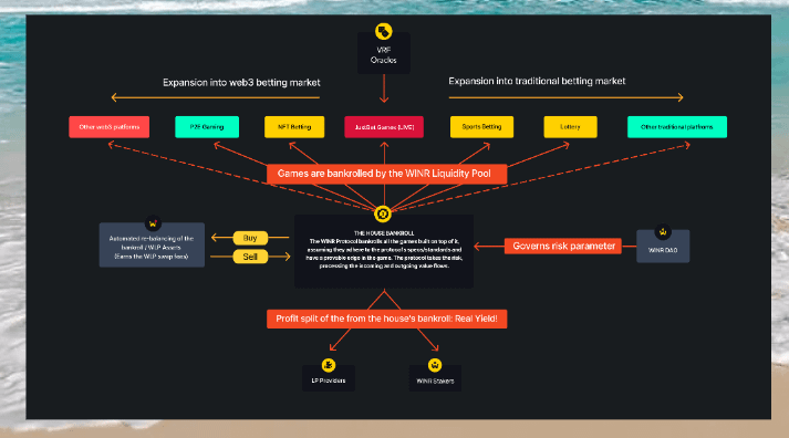WINR offers a liquidity pool (WLP) and infrastructure for building games and casinos using the WINR Engine.