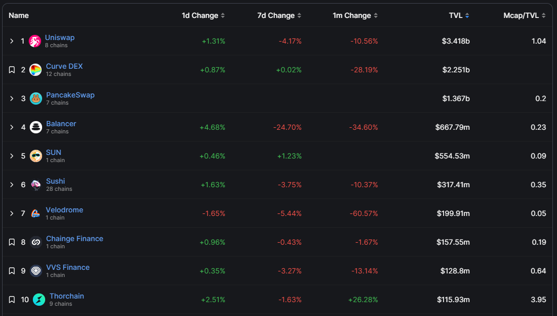 @VelodromeFi is also the only Solidly Variant that has broken into the top 10 DEXs in terms of TVL in the whole of DeFi.