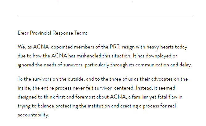 This realization and other serious irregularities in the PRT process led these three PRT members to believe that Bp. Alan Hawkins and other @the_ACNA leaders had gravely mishandled the abuse cases in @MidwestAnglican and were not proceeding in good faith.