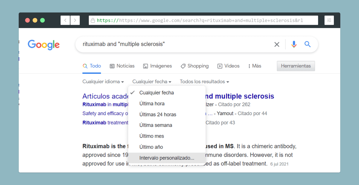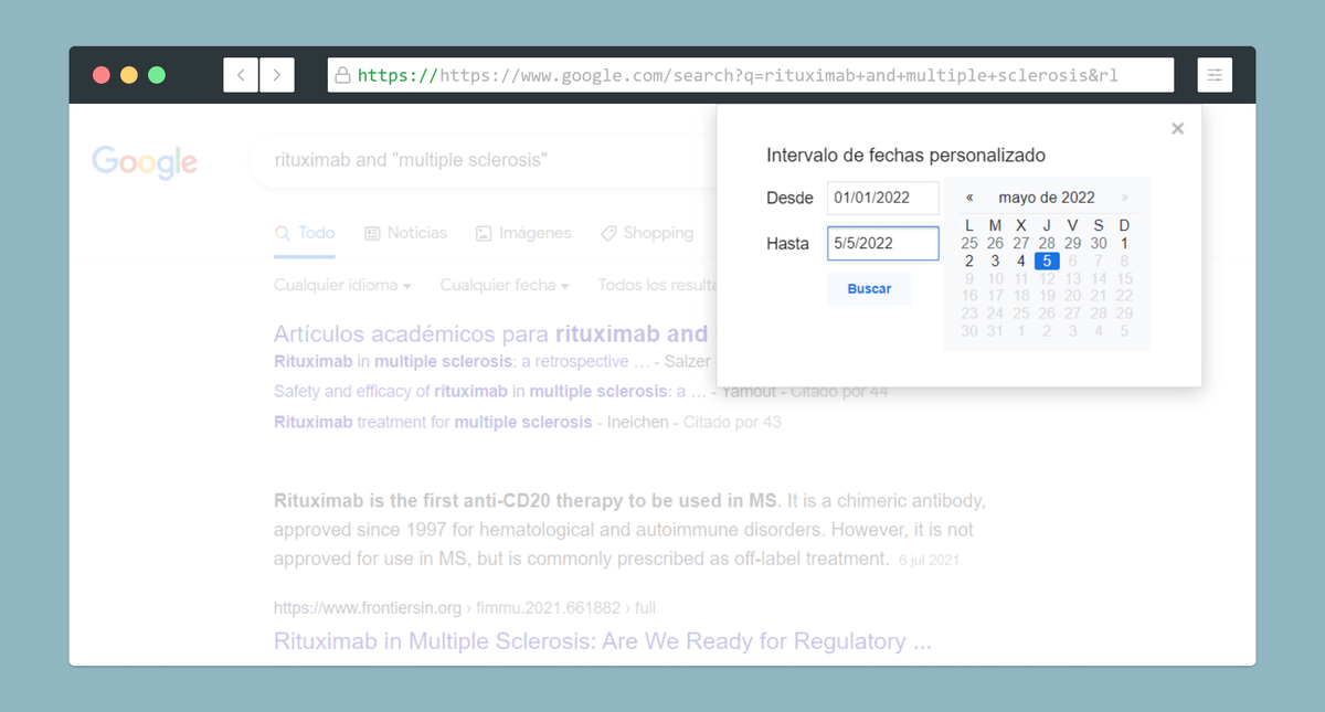 💡Muestra únicamente resultados publicados en el intervalo de fecha que indiquemos.