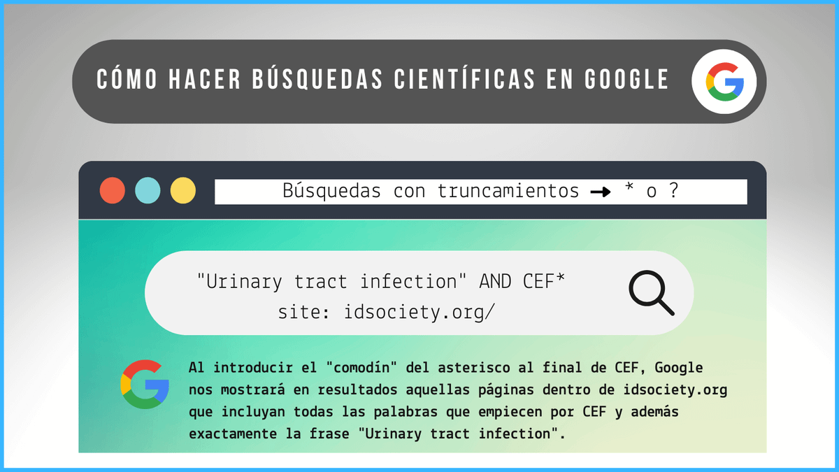 💡 Introduciendo el * o un ? al final, al principio o en medio de una palabra clave podemos buscar por las diferentes terminaciones o variaciones de esa palabra.