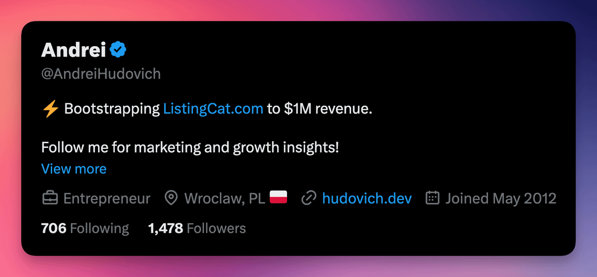 Your profile text must be catchy. It should accomplish two things: - Convert visitors into your followers - Navigate visitors to your landing page(s) No need for extra, irrelevant info there.
