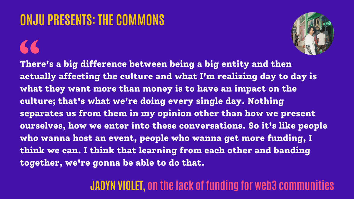 Reflecting on NFTNYC, Ohnahji fam @ritzy_p asked @jadynviolet abt the importance of funding for Web3 communities & how it can impact Web3 culture.