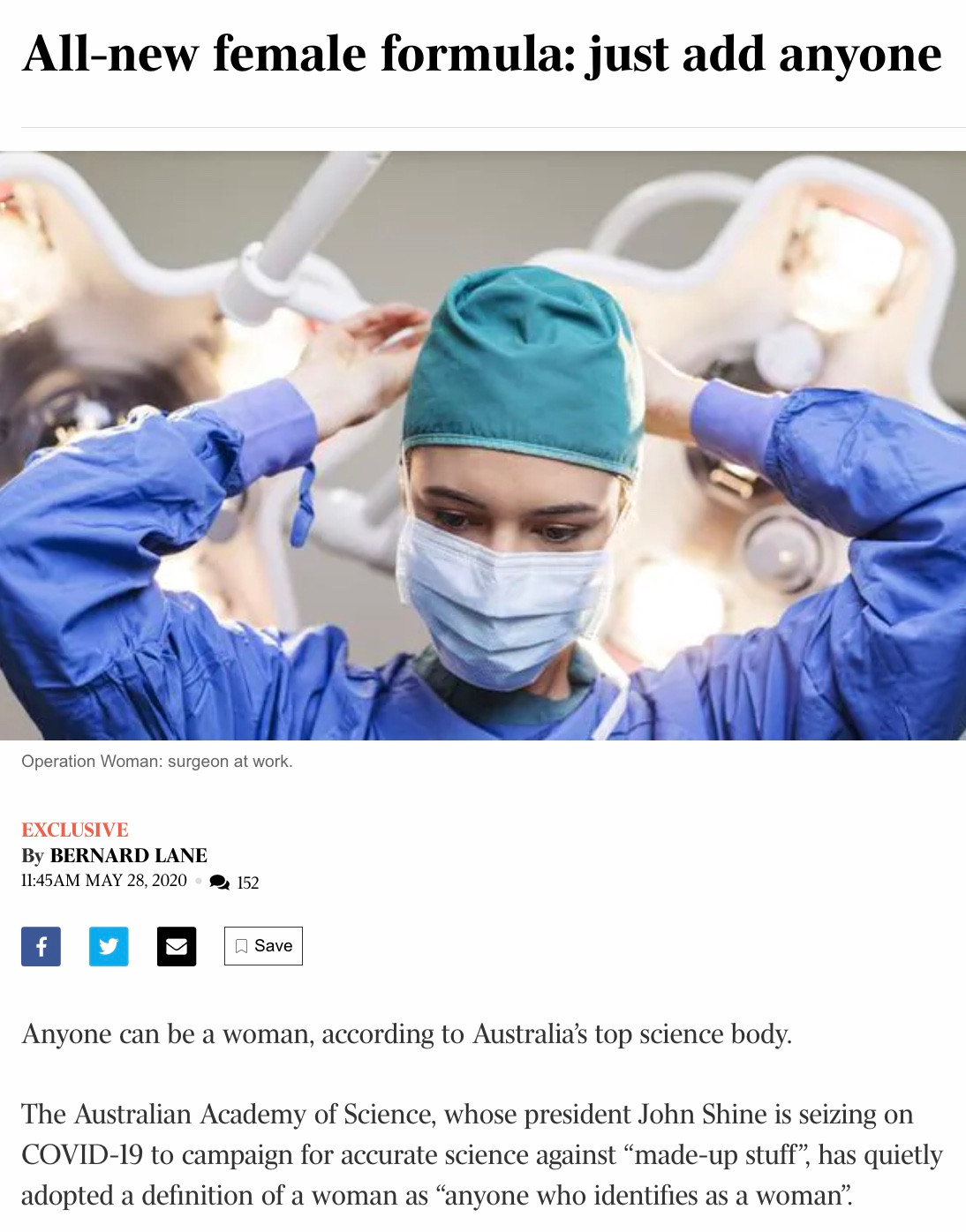 Asked if Sport Australia agreed that womenâs sport was intended for biological females, Dalton said: âIâm not specifically aware of what our policy is on thatâ. The agency said later that it did not define the term "woman". They could've asked the Australian Academy of Science.