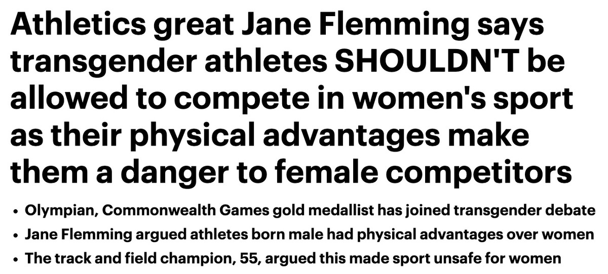 In Australia, two retired athletes Tamsyn Manou & Jane Flemming have gone public in defence of the long-standing female category of sport & they no doubt speak for many younger women & girls in sport who feel they must remain silent.