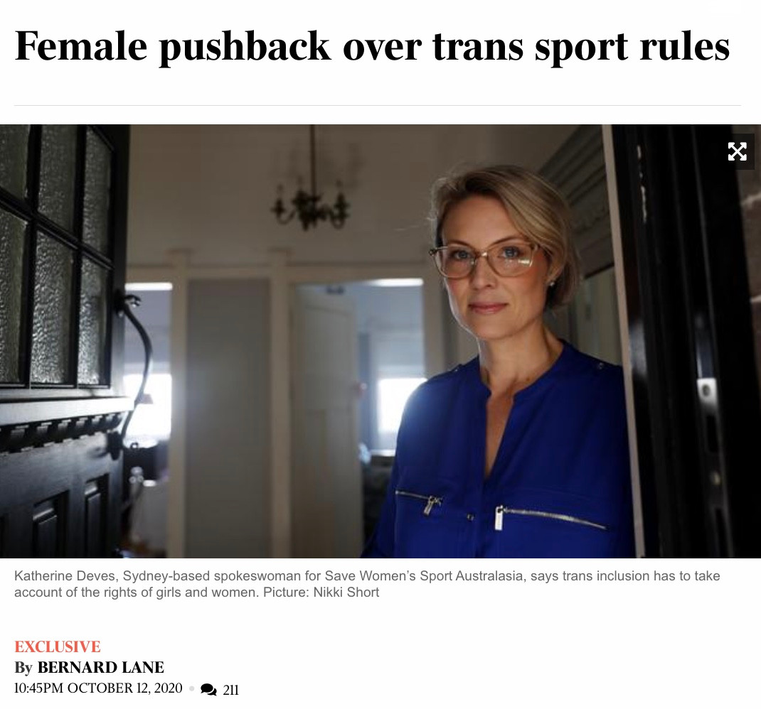 Back in Sydney, two years ago, Katherine Deves, a mum of three sporty girls, felt she had to make a stand on the integrity of the female sport category & so she was involved in the 2020 launch of Save Women's Sport Australasia & became its spokeswoman.