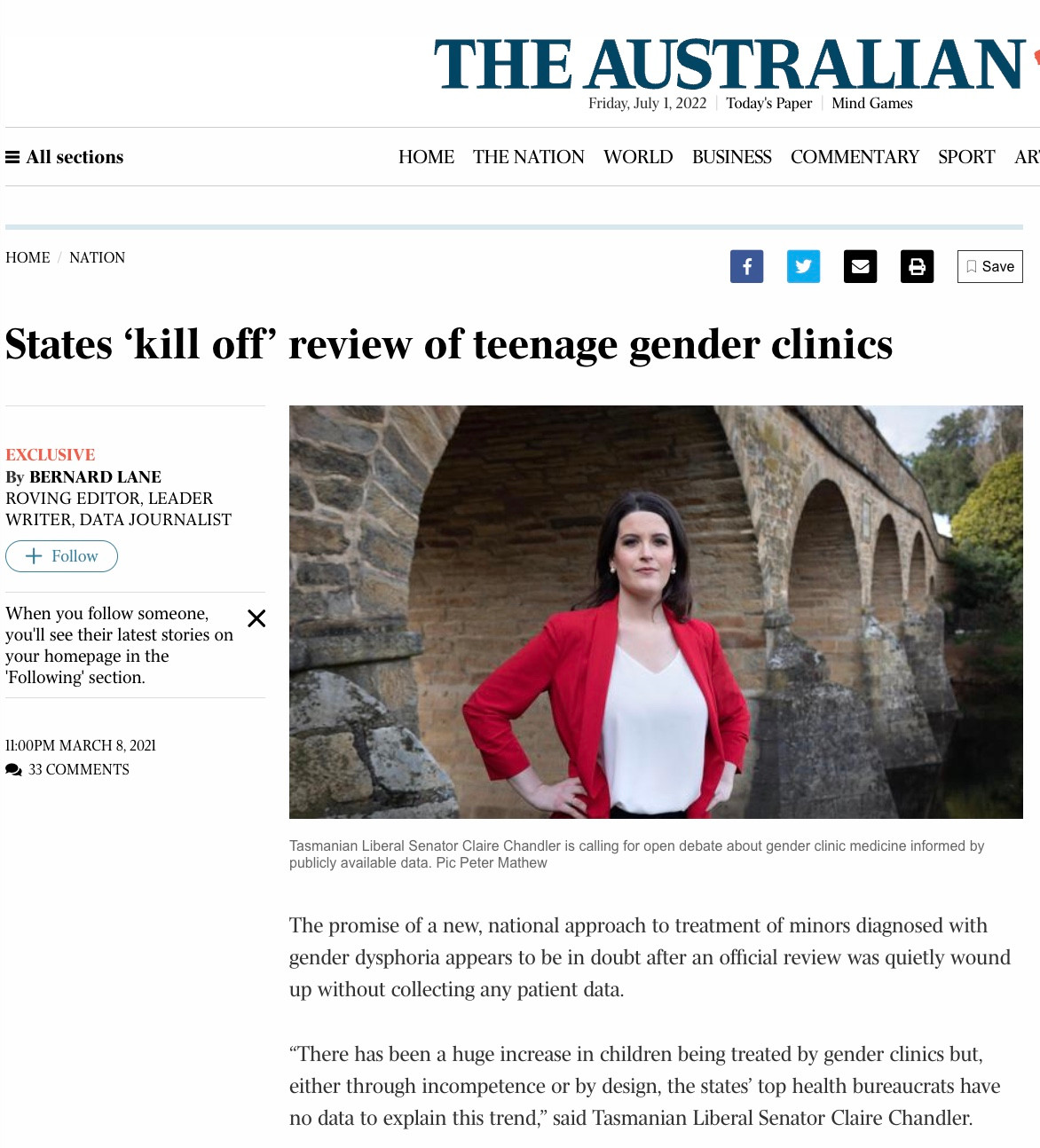 “There has been a huge increase in children being treated by gender clinics but, either through incompetence or by design, the states’ top health bureaucrats have no data to explain this trend,” said Senator Chandler, who had been pushing for public data and open debate.