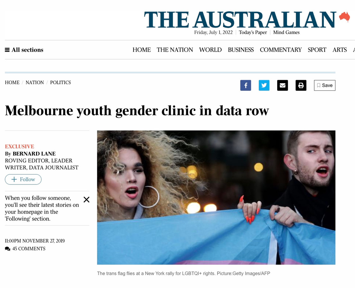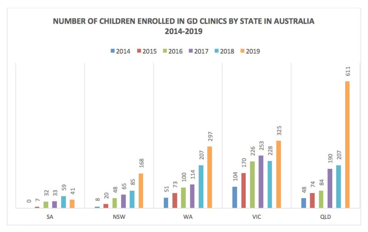 Australia is worse off when it comes to public data from gender clinics. Our federal system means data is fragmented across jurisdictions. And although the Tavistock has been criticised over data collection, it does publish regular basic data, something no Australian clinic does.