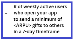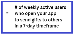 - no. of weekly active users who send gifts to others