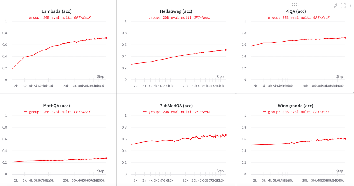 As a reminder, intermediate checkpoints for GPT-NeoX 20B are available, DM me if you would like to experiment with them. Also DM me if you want to experiment on GPT-NeoX but lack the compute! EleutherAI is happy to provide free compute to anyone doing research on it. (12/12)
