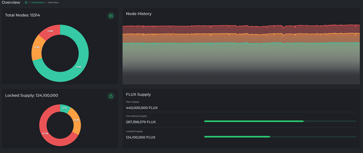 #FLUX Max Supply is 440Mil coins, until now there is 287,398,579 FLUX circulating in the market, that's 65.3% , nearly half of that (43.1%) is locked in staking and nodes.