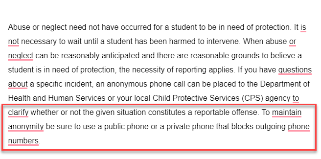 This policy protects the church, not the victim. Lawyers come before CPS. Any cooperation with the authorities is done "under the guidance of the church's lawyer." Want to check with CPS to see if you should report? Call anonymously so they can't trace it to the church.