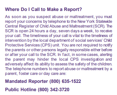 The CARE Act subjects pastors to mandated reporter rules. ocfs.ny.gov/publications/Pub1159/OCFS-Pub1159.pdf Mandated reporters are required to call CPS immediately. Mandated reporters do not do their own investigations--that is for CPS and local police.