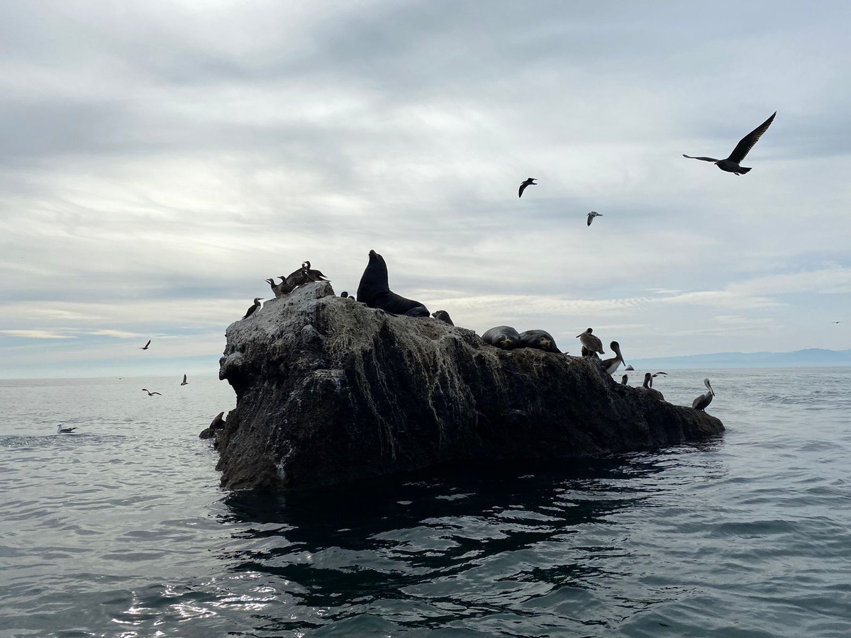 Sea lions & sea birds on one of the little islets near Consag Rock in the eastern part of the