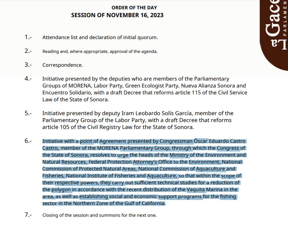 Today Sonora state legislature @CongresoSon approved unanimously a point of agreement calling on MX federal agencies to undertake a technical study to reduce #vaquita gillnet ban marine protected area polygon & establish social & economic support programs for Upper Gulf fishers. twitter.com/CongresoSon/status/1725189116521050399