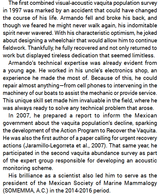 In Memorium to #vaquita acoustics pioneer "Armando was not just an exceptional scientist but also a person of extraordinary kindness generosity & humanity. He listened to people with same attention & respect as he listened to cetaceans."