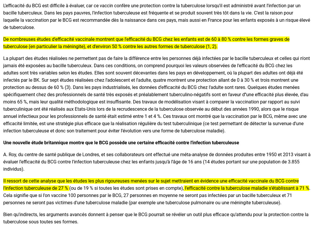 - Ils pensent que si c'est pas efficace, c'est pas la peine... mais le vaccin contre la tuberculose ou la grippe n'est pas un soucis