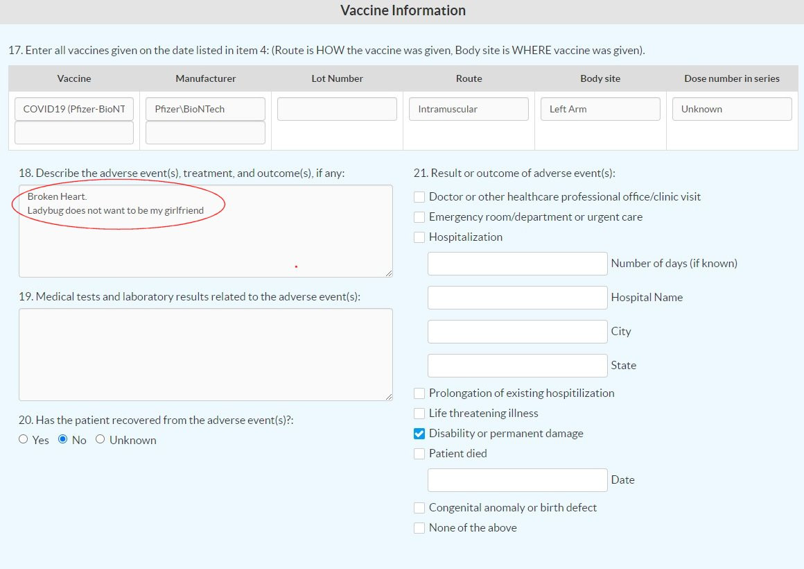 Pour ceux qui s'appuient sur l'état actuel des déclarations VAERS :