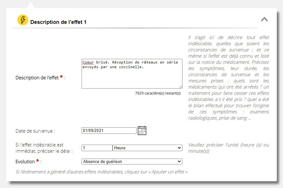 Et bien sûr, ça fonctionne aussi avec la pharmacovigilance européenne (Eudravigilance). En France, ça se passe sur le site de l'ANSM.
