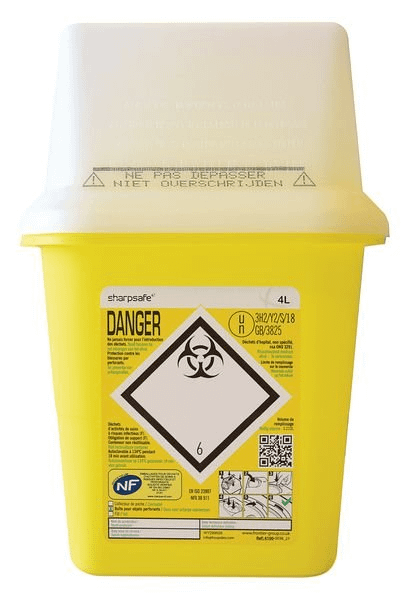 Les sacs poubelles et les boites à aiguilles en dur DASRI sont identifiables par leur couleur jaune.