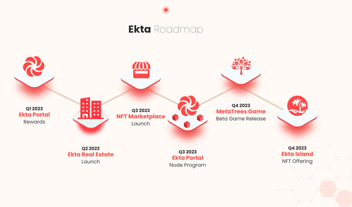 Ekta Portal (nodes) get shipped, Real Estate eco launches, NFT marketplace goes live, and the MetaTrees game gets released!
