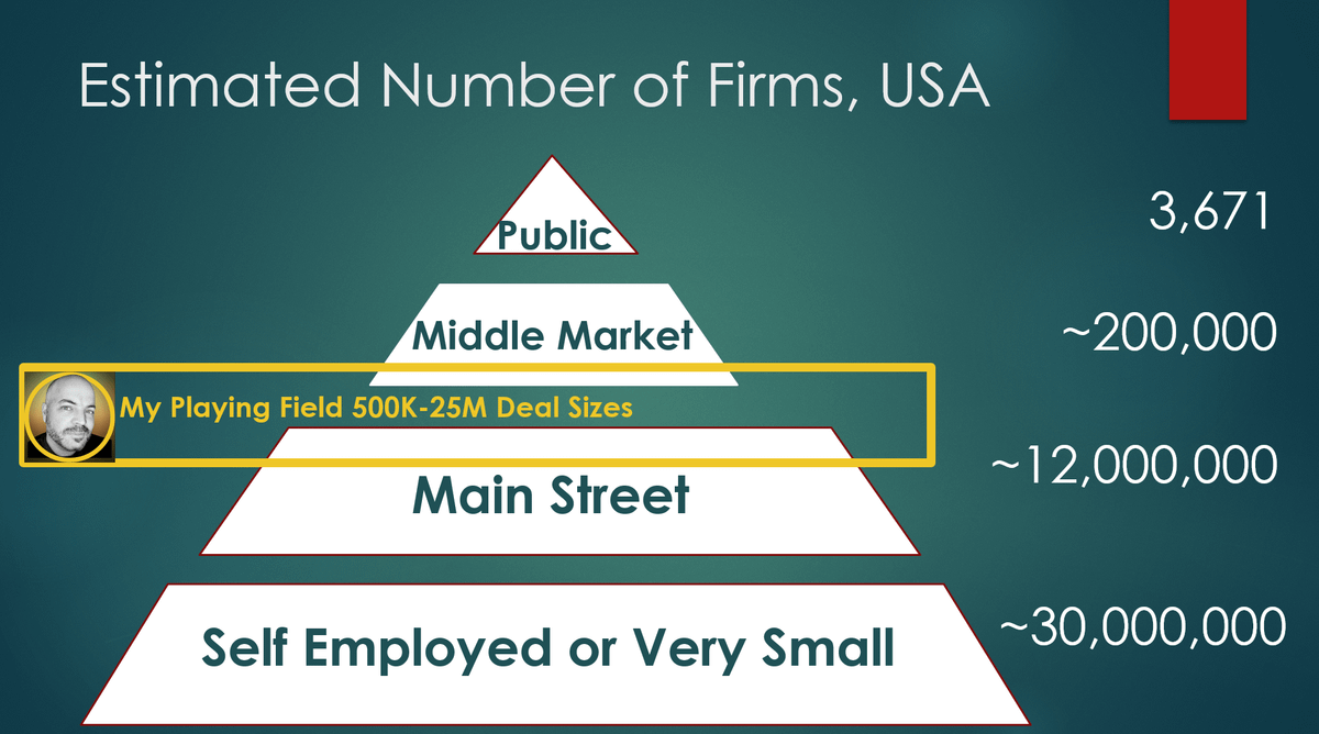 First Let's Understand Main Street, which we'll say is $0-$5M deal size. But I'm going to break it down further into Lower Main Street <500K Deals and Premium Main Street 500K-5M Deals.
