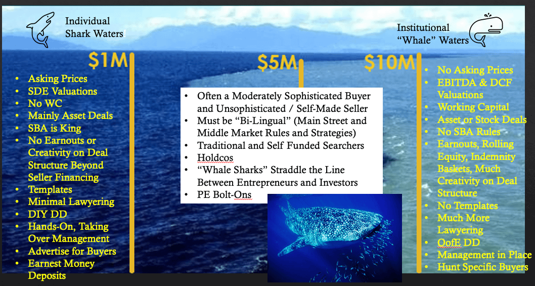Below $1M feels like Main Street and above $10M feels like Lower Middle Market M&A, and the grey area between $1-10M, you better know both languages. Often Seller speaks one and Buyer another.