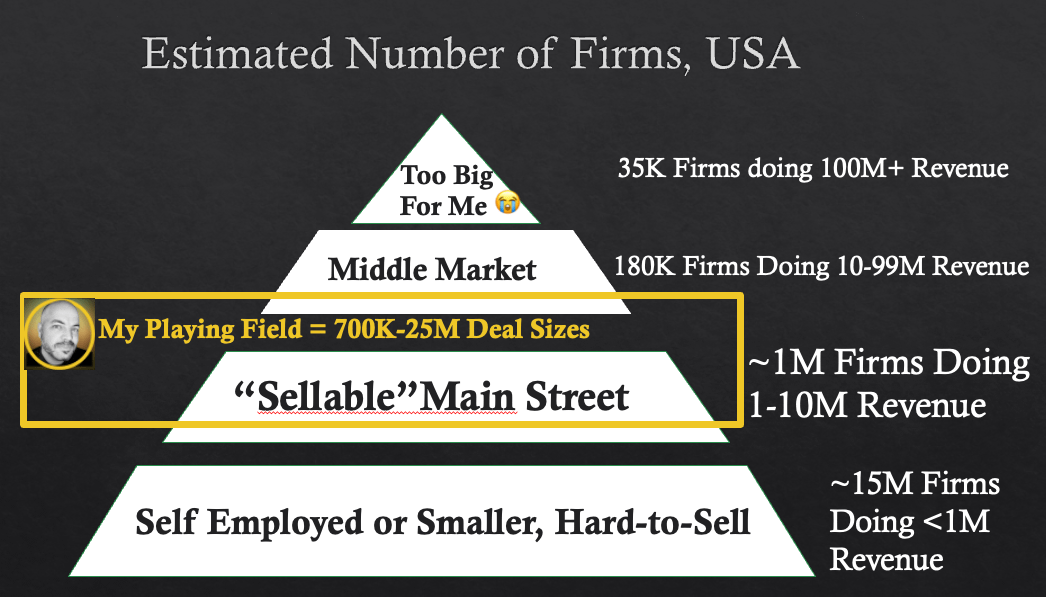 First Let's Understand Main Street, which we'll say is $0-$5M deal size. But I'm going to break it down further into Lower Main Street <700K Deals and Premium Main Street 700K-5M Deals.