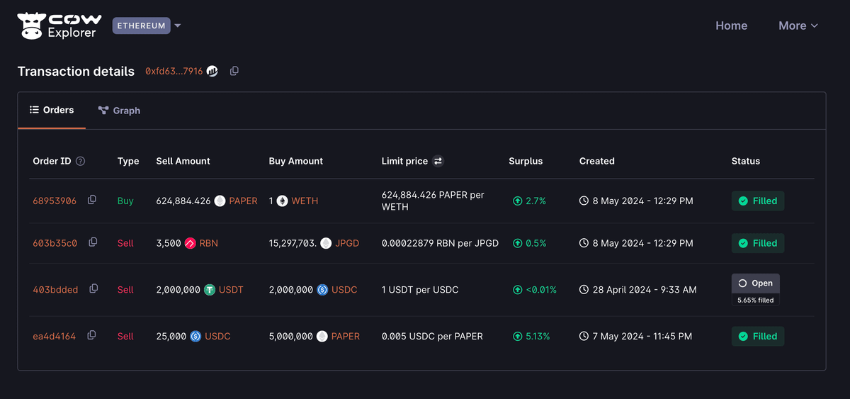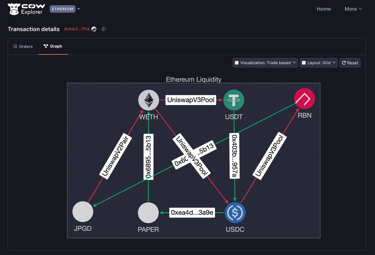 The PAPER <> ETH liquidity took advantage of the USDT <> USDC route to source ETH through Uniswap.