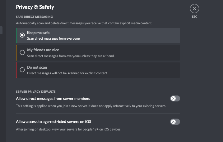 All Admins & MODS should have "SAFE DIRECT MESSAGES" set to "Keep me Safe -> Scan direct messages from everyone" and "PRIVACY & SAFETY DEFAULTS -> Allow direct messages from server members" set to "OFF"
