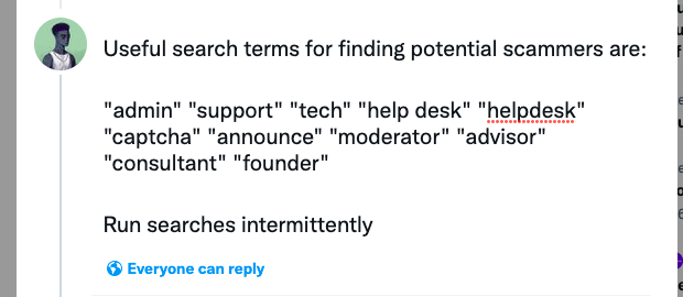 As well as names that mimic team members, also keep an eye out for anyone trying to pass themselves off as some sort of official support