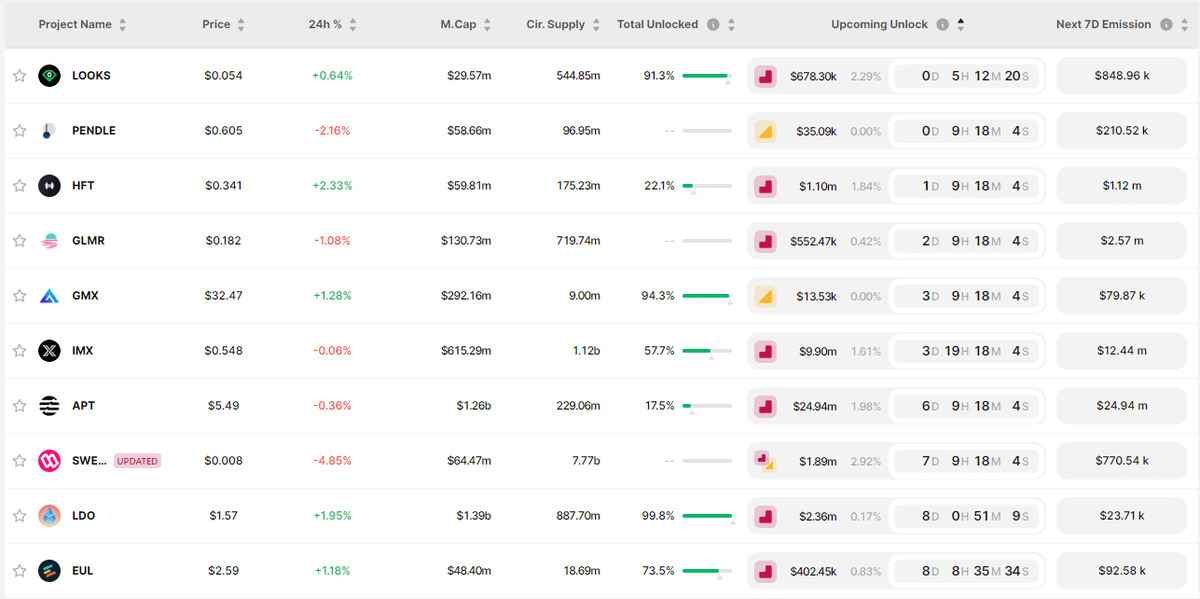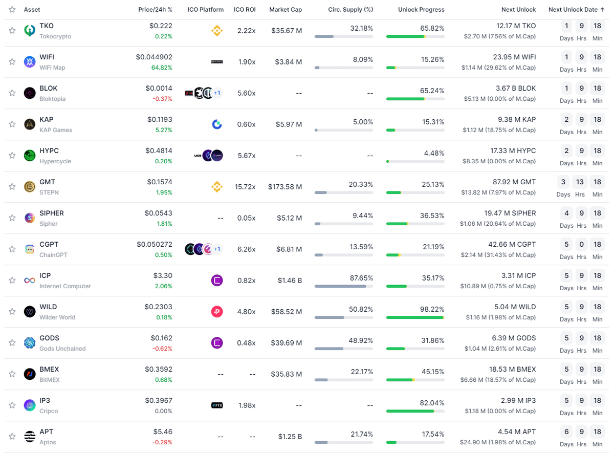 ⢠Token Unlocks