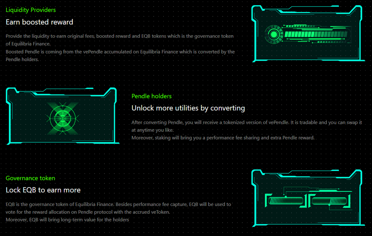 Even without owning any $PENDLE tokens, LPs who provide liquidity to Pendle through Equilibria โ Earn additional rewards in both $vePENDLE and $EQB.